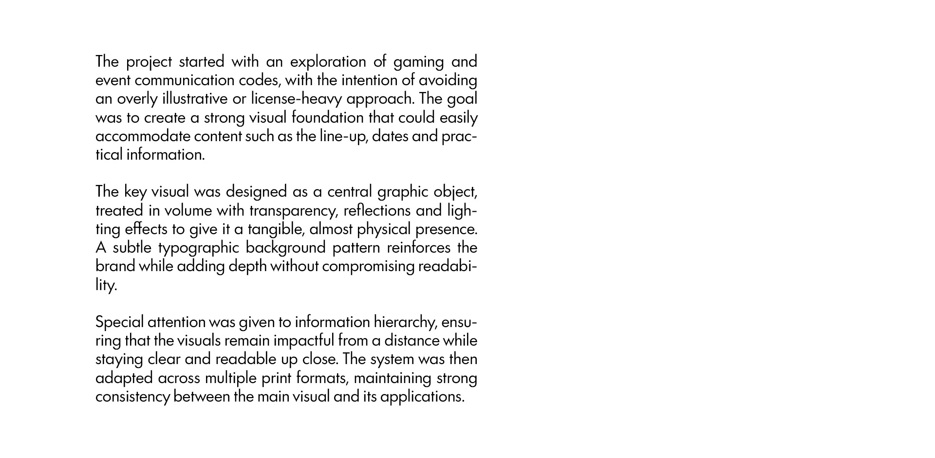Microids × Paris Games Week is a visual identity project designed to support the publisher’s presence at PGW through a strong and recognizable key visual. Built around an iconic, immersive graphic object, the concept blends gaming references, volume and light to create a modern and adaptable communication system, suitable for both print and digital uses in a highly competitive event environment.
