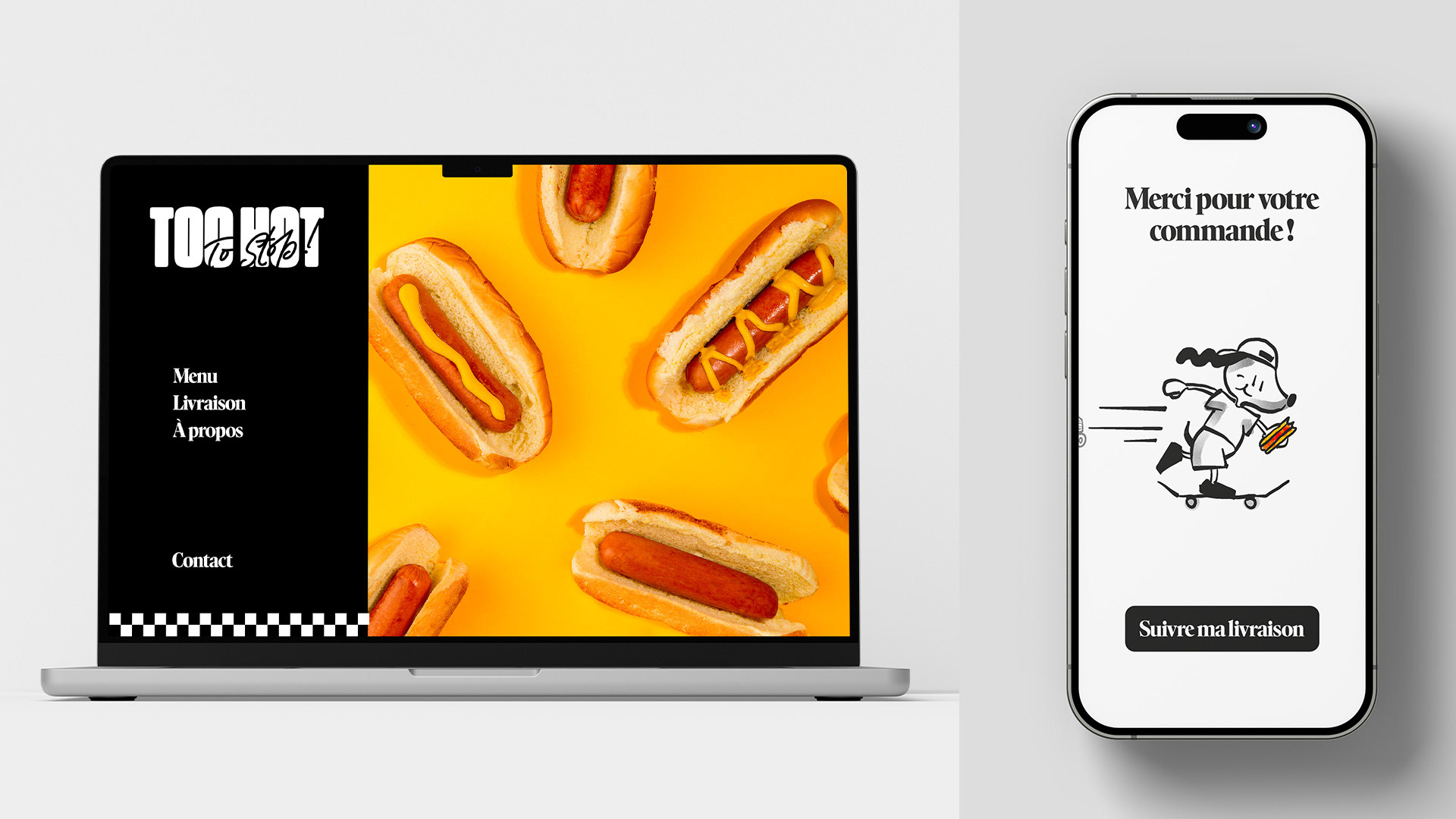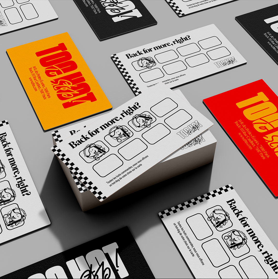 Too Hot To Stop is a fictitious project that I really enjoyed working on. I took a simple concept, the hot dog street corner, and developed a strong, authentic brand image, rooted in the tradition of American food trucks but with a contemporary twist. The project stands out for its striking visual identity, attention to detail in product presentation and an experience that combines simplicity and originality, evoking the atmosphere of American street food in the 1970s.