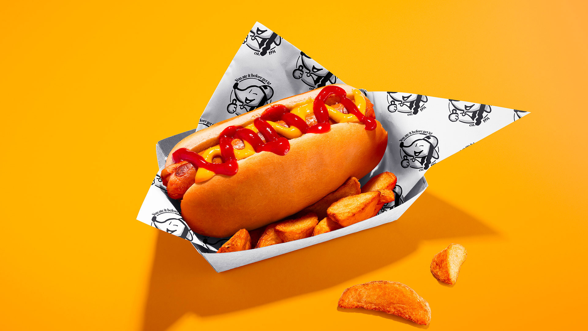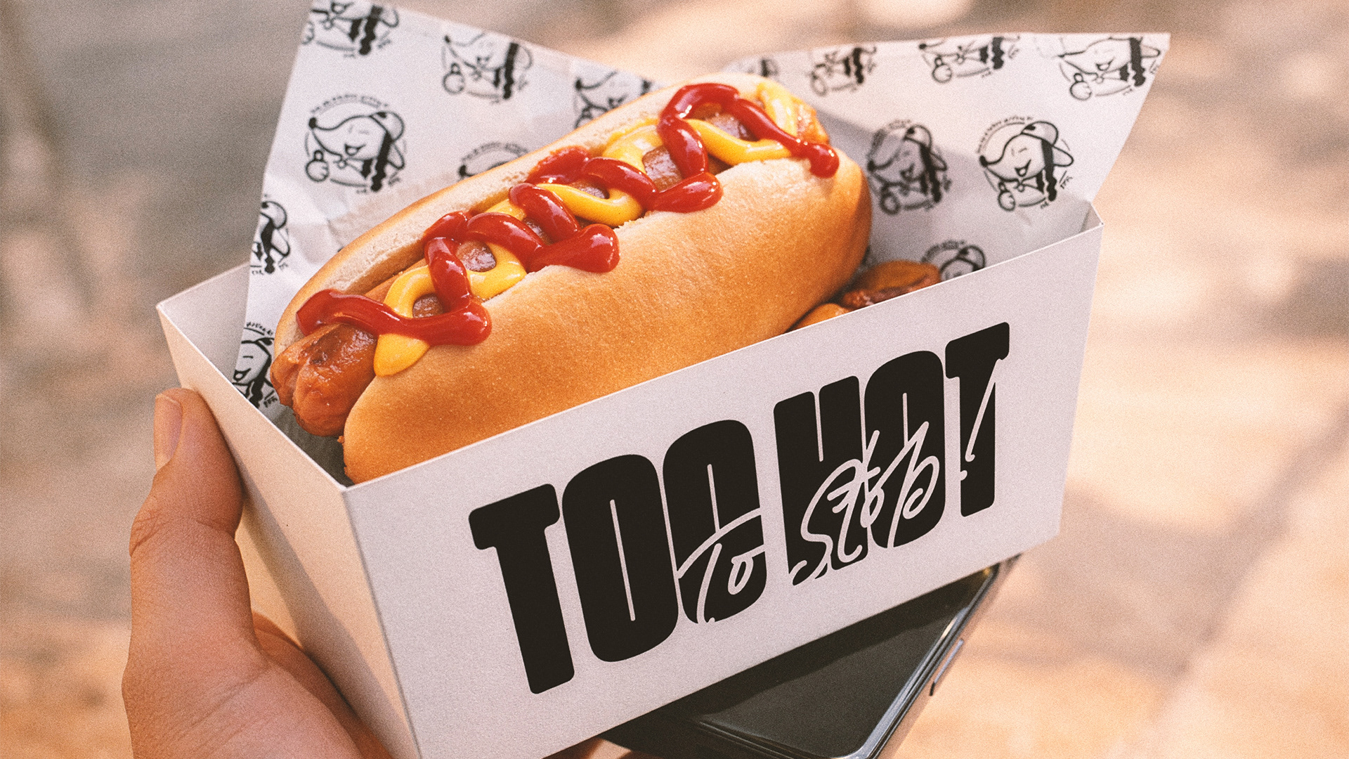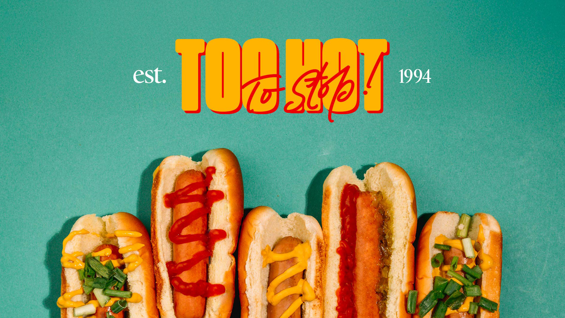 Too Hot to Stop is a branding and visual identity project for a New-York-inspired hot dog restaurant based in Paris. The concept blends bold typography, vibrant colors and playful illustrations to create a strong, energetic universe rooted in street food culture and 90s references, designed to stand out across packaging, signage and communication materials.